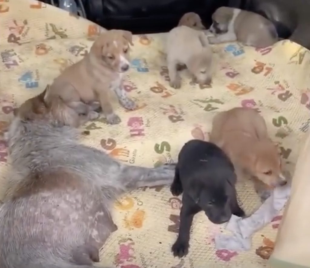 The final scenes of her rescue video captured this beautifully: Saria, her fur now clean and soft, sitting proudly in a sunlit courtyard with her seven healthy puppies tumbling around her. She wagged her tail, her once-injured legs moving freely. When one of her puppies stumbled, she gently nudged it back up, as if to say, “Keep trying, little one.” The camera zoomed in on her face—no longer filled with pain, but with contentment. Her eyes sparkled in the afternoon light, reflecting gratitude and a quiet joy that words could hardly describe.