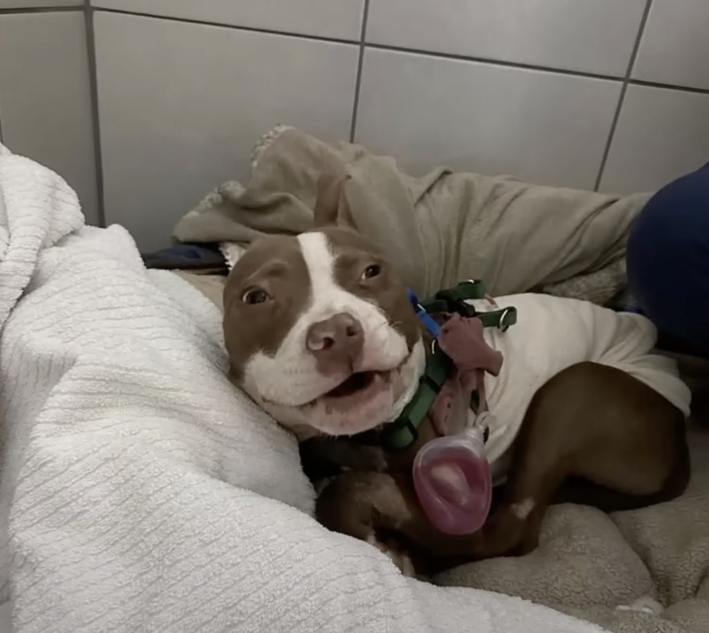 The most daunting challenge is the removal of the embedded object. Normally, a dog in this situation would be placed under full anesthesia, but Mika’s frail body can’t handle that. The surgeons must find a way to save her while keeping her alive through the process. It takes nearly six long hours of careful, precise work. Each movement is deliberate, every incision made with compassion and control. When the fabric is finally removed, the wound is cleaned and treated. It’s a moment of quiet triumph mixed with sorrow for all she has endured.