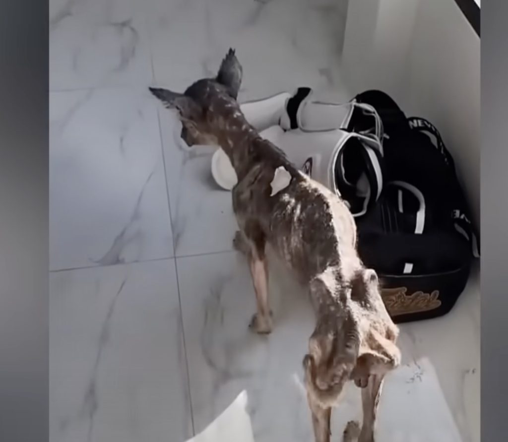 In the beginning, Sena’s life hung by the thinnest thread. She was a frail, broken soul wandering the streets, suffering from severe malnutrition and painful skin conditions that made every movement agonizing. Her ribs showed through her thinning fur, her eyes were dull with exhaustion, and her spirit seemed almost gone. When rescuers first found her, she was too weak to even wag her tail. Every breath she took was a quiet battle against a world that had shown her little kindness. Yet beneath the layers of pain and neglect, there was still a flicker of life—a spark that refused to die out.