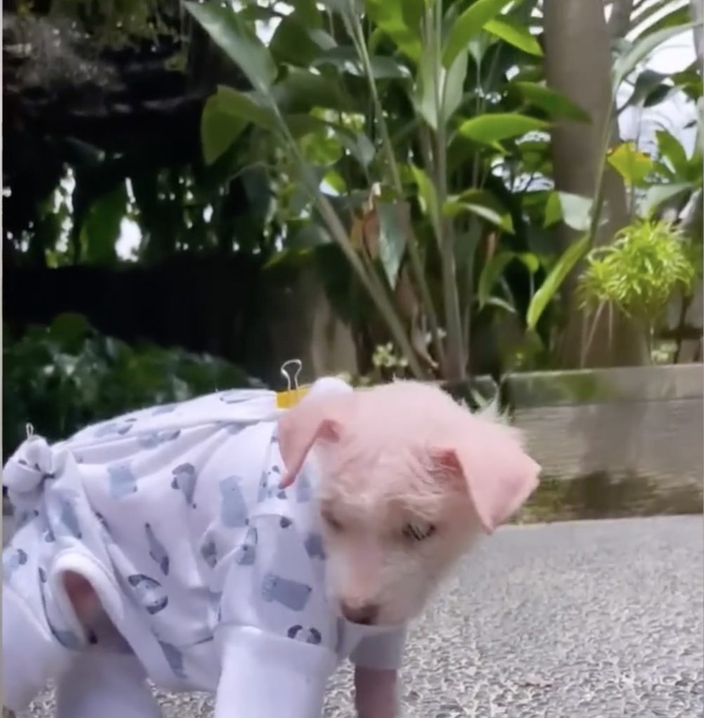 At the rescue center, it became clear just how fragile she was. The vets carefully examined her tiny frame and confirmed that she was suffering from a severe case of mange — a painful skin condition caused by mites that had stolen away her fur and left her skin red, itchy, and covered in sores. She was also dangerously underweight and dehydrated, and every rib was visible through her delicate skin. As the team cleaned her gently in warm water, Willow whimpered softly but didn’t resist. It was as if she understood that these hands were there to heal, not harm.