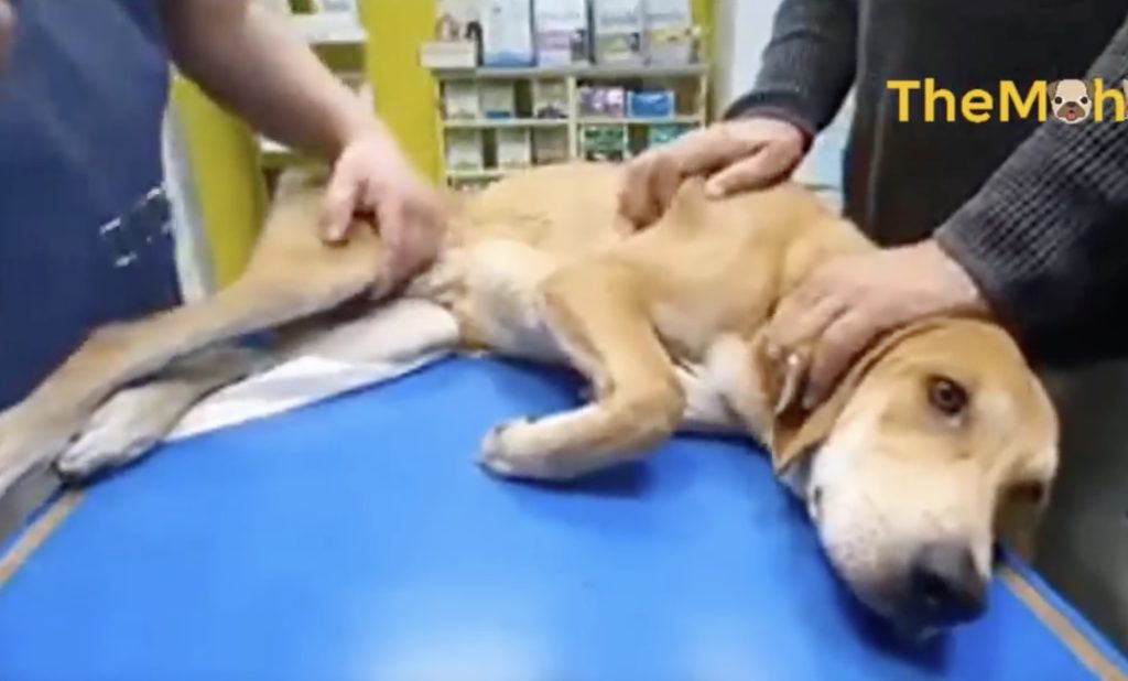 As the doctor prepares to discuss the next steps, Maddox suddenly stirs. Slowly, painfully, he lifts his head. His legs tremble violently, but with remarkable determination, he pushes himself up until he is standing—just for a brief second, but it’s enough to take everyone’s breath away. The vet, the nurses, and the rescuer all freeze. Against every medical prediction, this broken dog has just stood on his own.