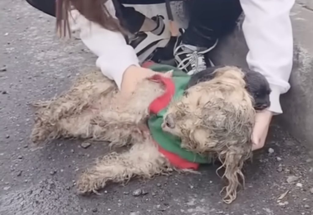 When Gabriela first spots the dog and her puppy, she immediately pulls over. Her heart tightens at the sight—two souls abandoned on the cold ground, one fighting to live, the other already fading away. Without hesitation, Gabriela kneels beside them. She speaks softly, her voice trembling, hoping the sound might offer a sense of calm. Gently, she picks up the fragile puppy first, his tiny body fitting perfectly into her hand. Then, with immense care, she lifts the limp mother dog into her arms. Her movements are steady, tender, as though she’s holding something sacred.