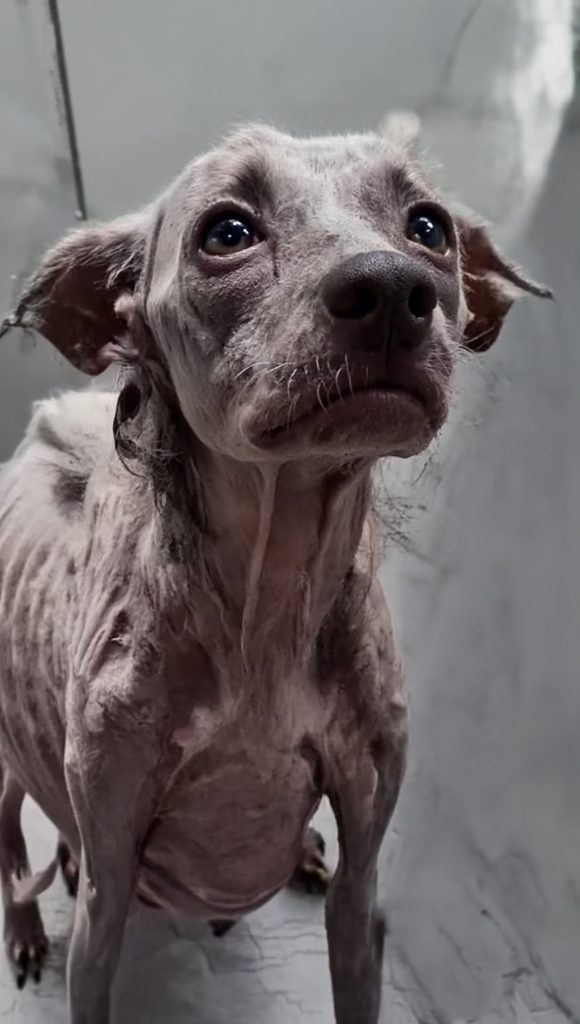 Her life might have slipped away unnoticed if fate hadn’t intervened. When the property she was trapped on was sold, someone finally discovered her. What they saw left them speechless. Angela lay motionless in her own filth, her frail body covered in open sores and wounds. Her skin was raw from years of lying on cold, hard ground. Her fur was tangled, thick with dirt and waste, and her ribs jutted sharply through her thin frame. But more heartbreaking than her physical condition was her face—tired, empty, and resigned. She didn’t struggle or resist; she simply waited, as if ready for everything to end.