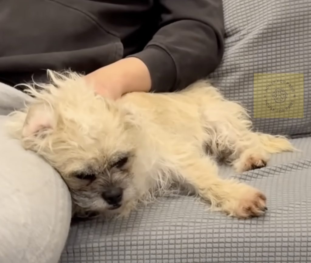 After a few weeks, a retired couple expressed interest. They had a quiet home and plenty of time to give, so it felt like the perfect match. When they came to meet the dogs, it was heartwarming. The mother wagged her tail shyly, and the puppy climbed right into the woman’s lap as if they had known each other forever. Seeing that, the man’s heart lifted with relief. Finally, the little family had found safety, warmth, and love.