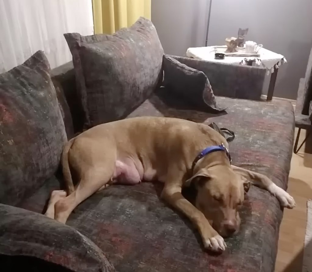In the months that followed, Hera transformed completely. The once trembling, heartbroken dog blossomed into a joyful, affectionate companion. She loved running through the yard, chasing butterflies and basking in the afternoon sun. At night, she curled up beside her new mother, resting her head gently on her lap, sighing contentedly as if to say, “I’m finally home.” Her eyes, once dim with sorrow, now sparkled with warmth and trust.