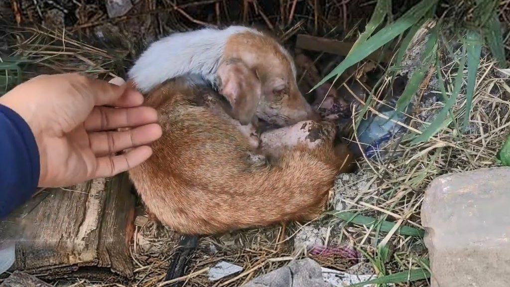 When she arrived, she saw him—an emaciated little puppy, nothing but skin and bones, curled up against the cold ground. His tiny frame was trembling from exhaustion, yet when she knelt beside him, he lifted his head ever so slightly, just enough to look at her. That faint movement—so weak, yet full of meaning—pierced straight through her heart. In that fragile glance, she saw fear, pain, and a flicker of hope. It was as if he was silently saying, “Please, don’t leave me.” Tears welled up in her eyes as she gently scooped him into her arms, whispering that everything would be okay.