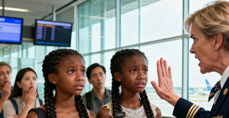 They had saved for months and even convinced their father to surprise them with an upgrade. But as they reached the gate, a flight attendant with a cold expression and clipped tone blocked their way. “This line is for first-class passengers,” she said firmly, her eyes narrowing. Naomi politely held out her tickets. “Yes, ma’am, we are flying first-class.” The attendant barely glanced at them before shaking her head. “You must be mistaken. Please step aside.” The twins exchanged nervous glances. Nia tried to explain, showing her ticket again, but the woman waved dismissively. The tension in the air was palpable as passengers waiting nearby began to watch.