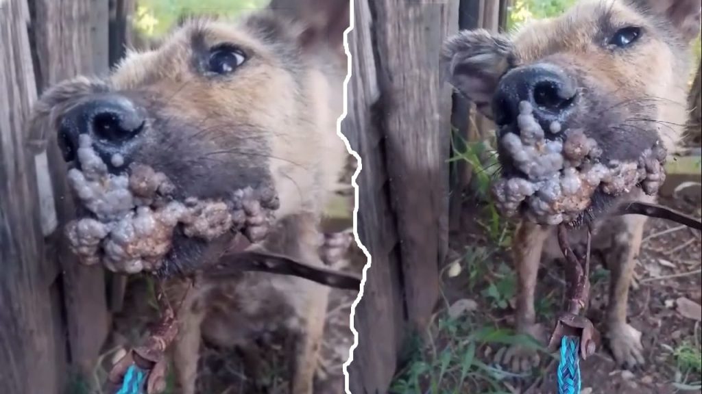 When Nossa was first discovered, she was almost unrecognizable as a dog. She wandered the streets alone, weak and trembling, her body painfully thin and her steps slow with exhaustion. Illness had drained her strength, and neglect had left its mark everywhere. Her eyes spoke without words, carrying fear, hunger, and a deep sense of abandonment. But what drew the most concern were the large, swollen growths covering her mouth. These painful lumps made it nearly impossible for her to eat or drink. Every breath appeared labored, and every movement took effort. Nossa was suffering, and time was not on her side.