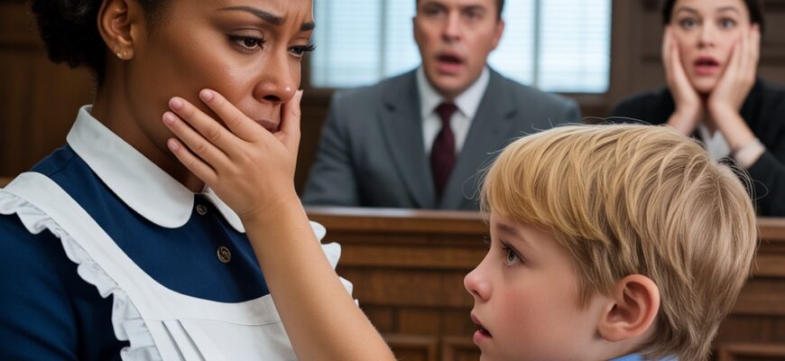 In the back of the courtroom, Ethan sat beside his nanny. Though young, he understood more than the adults assumed. He watched the woman who had cared for him being treated like a criminal.
