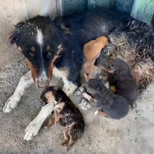 Full of maggots and flies, the mom dog endured pain every day but struggles to take care of her cubs